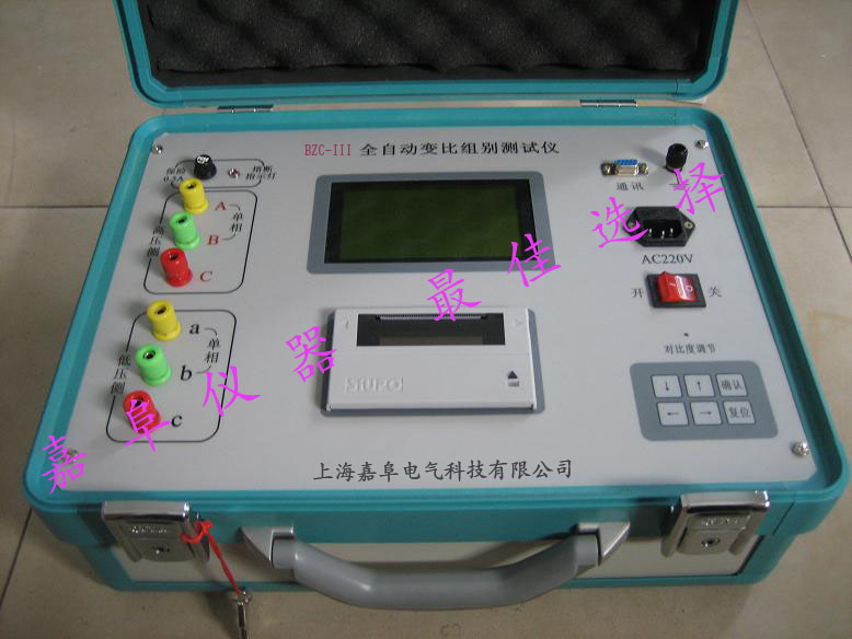 BZC-Ⅲ全自動變比組別測試儀用變比電橋測量變壓器的變比,操作過程繁瑣、測量范圍狹窄,已經(jīng)不適應(yīng)現(xiàn)代測量快節(jié)奏、高效率的要求。為此,上海嘉阜電氣科技有限公司采用現(xiàn)代電子技術(shù),研制出了新一代全自動變比組別測試儀。它體積小,重量輕,精度高,穩(wěn)定性好。它采用了大屏幕中文液晶屏顯示、內(nèi)置中文菜單式操作,完成一組變壓器的測試只需11秒。BZC-III全自動變比組別測試儀是電力工業(yè)部門的理想測試儀器。