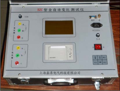 用變比電橋測量變壓器的變比,操作過程繁瑣,測量范圍狹窄,已經(jīng)不適應(yīng)現(xiàn)代測量的快節(jié)奏、高效率的要求。為此上海嘉阜電氣科技有限公司采用現(xiàn)代電子技術(shù),研制出了新一代BZC型全自動變比組別測試儀。它體積小,重量輕,精度高,穩(wěn)定性好。它采用了大屏幕漢字顯示、菜單操作,界面友好。變比組別可一次測完。該儀器是電力工業(yè)部門的理想測試儀器。