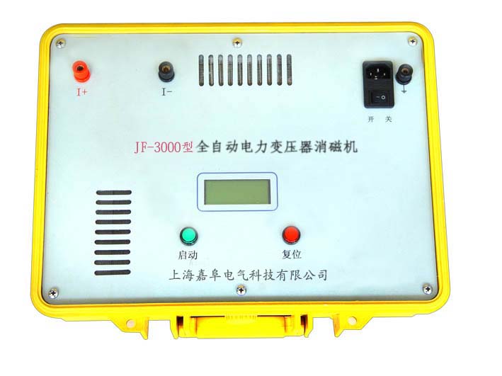 JF-3000型全自動電力變壓器消磁機是消除大型電力變壓器直流電阻試驗后剩磁危害的專用設備,對保護電力變壓器免受勵磁涌流沖擊,和安全投運有極其重要的作用。